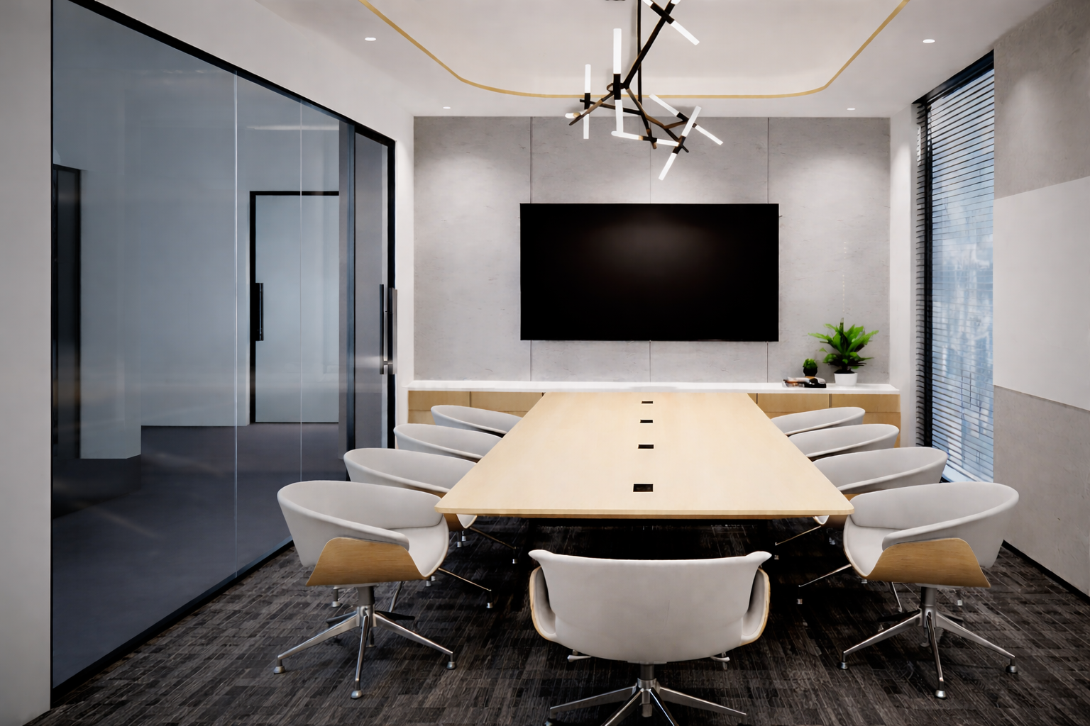Board rooms are professional spaces designed for impactful meetings, strategic discussions, decision-making, and fostering collaboration among key stakeholders.
